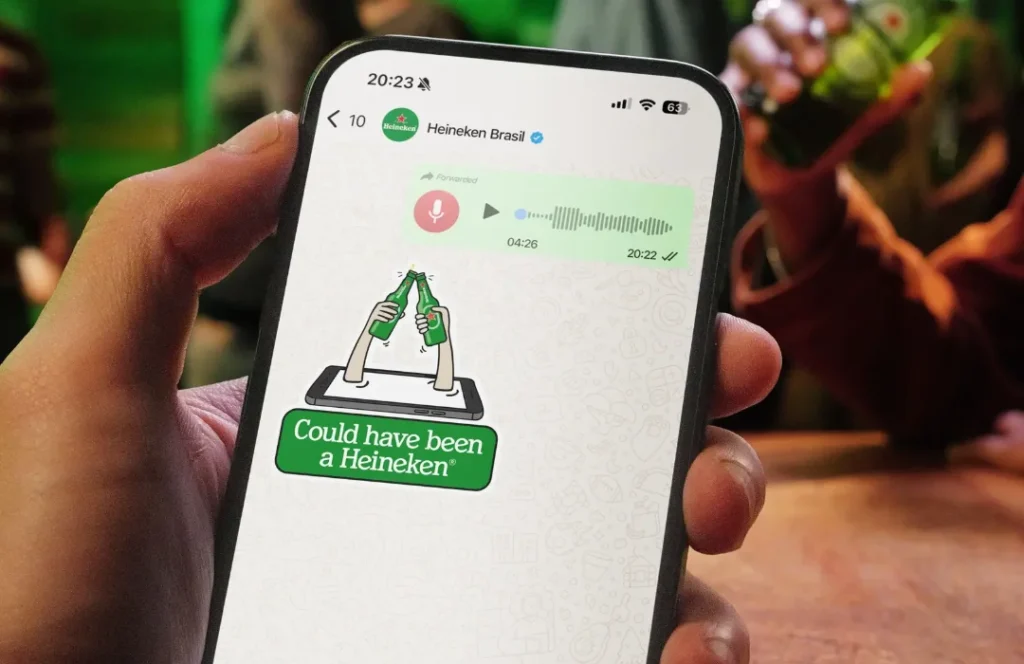 A Heineken lançou no Brasil uma ação que transforma áudios do WhatsApp em cervejas gratuitas. A marca desenvolveu um bot inteligente que recebe mensagens de voz dos consumidores e, em troca da interação, distribui cupons para resgatar produtos em estabelecimentos parceiros.