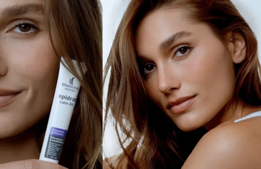 A modelo protagoniza a nova comunicação da linha dermatológica da marca, com elementos visuais e narrativos que remetem diretamente ao comercial original. A campanha utiliza nostalgia para criar conexão com consumidores de diferentes gerações, enquanto apresenta os produtos da Mantecorp Skincare.