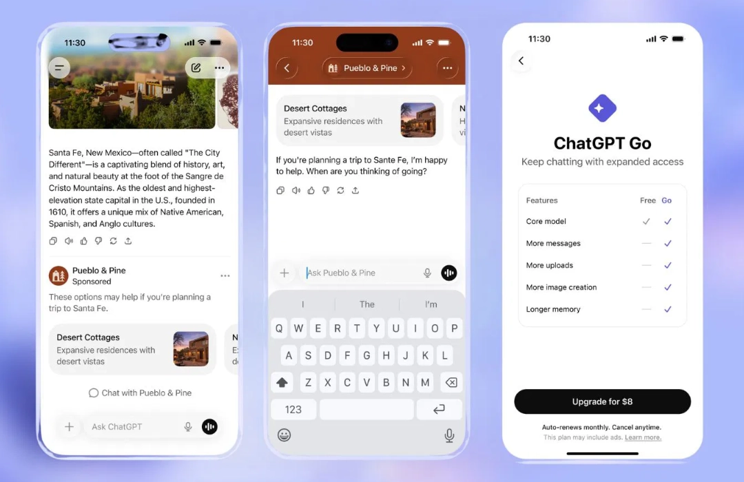 A empresa lançou publicidade nos planos gratuito e Go, gerando polêmica no setor de inteligência artificial.