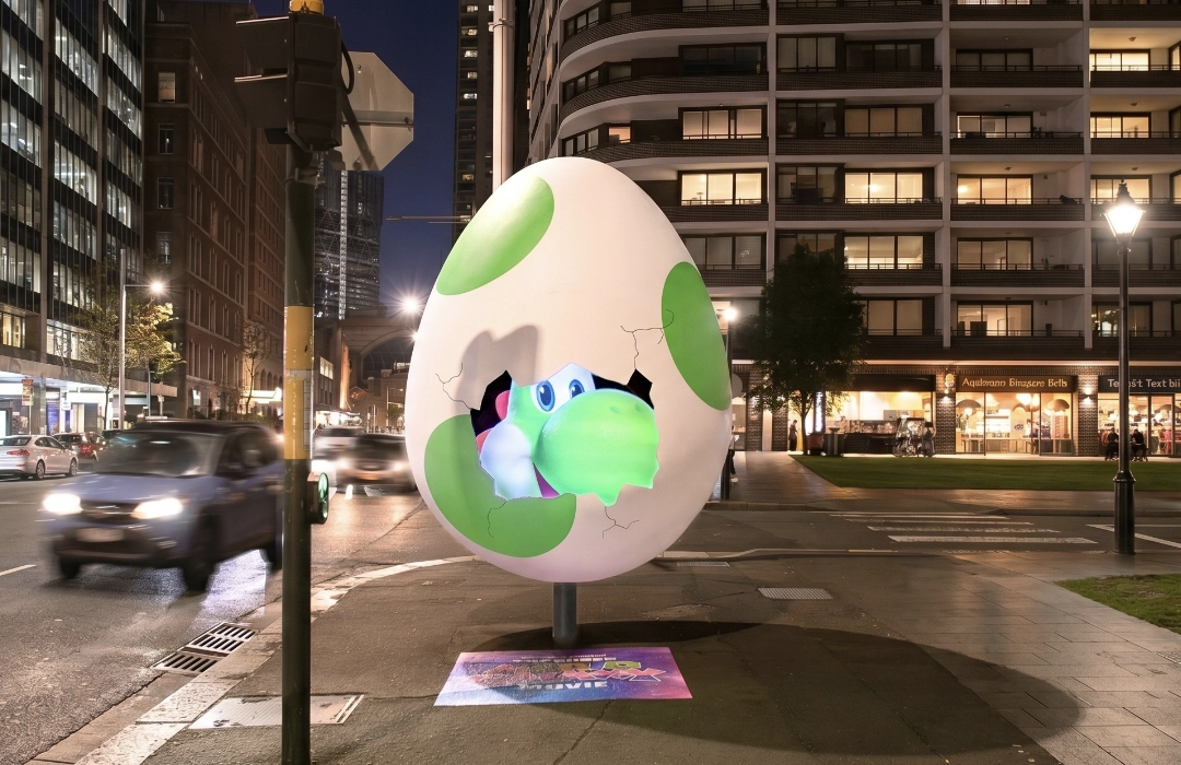 Para promover o lançamento de The Super Mario Galaxy Movie, a agência Creapills instalou réplicas enormes de ovos rachando nas vias movimentadas de Sidney nesta semana. A iniciativa surpreendeu os pedestres e trouxe o universo dos games diretamente para o asfalto.