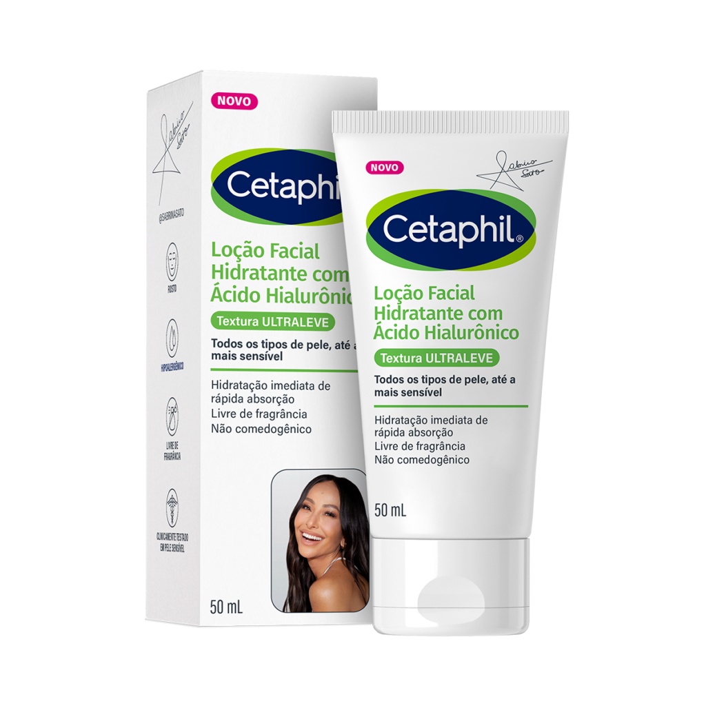 A nova Loção Facial Hidratante com Ácido Hialurônico, resultado da colaboração entre Sabrina Sato e Cetaphil, integra a exclusiva tecnologia Hyacare 50. Esta inovação utiliza pequenas partículas de ácido hialurônico hidrolisado, que são capazes de penetrar nas camadas mais profundas da pele, garantindo uma hidratação intensa e duradoura. A formulação ultraleve contribui para uma aparência rejuvenescida e um aumento da viscoelasticidade da pele, sem deixar sensação pegajosa ou resíduos.