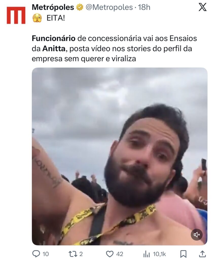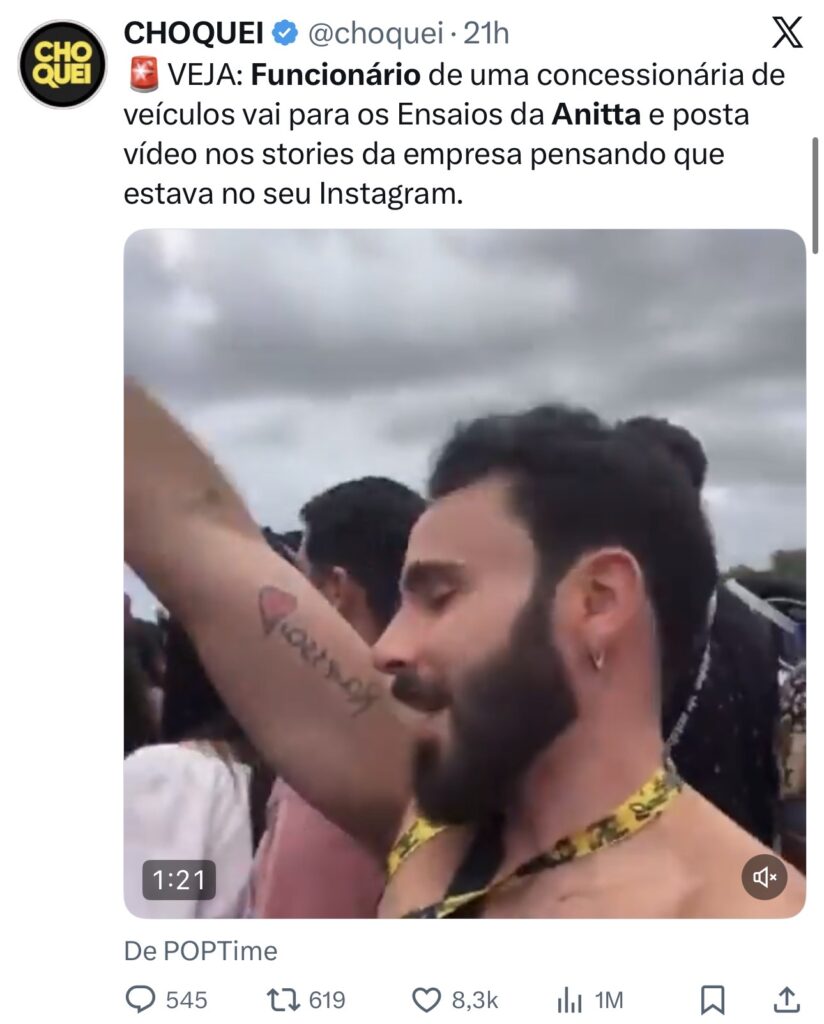 O profissional, responsável pela gestão das redes sociais da concessionária, publicou um vídeo curtindo o show da cantora diretamente no perfil oficial da empresa. A postagem ficou no ar por alguns minutos antes de ser removida, tempo suficiente para que dezenas de usuários fizessem capturas de tela e espalhassem o conteúdo pela internet.
